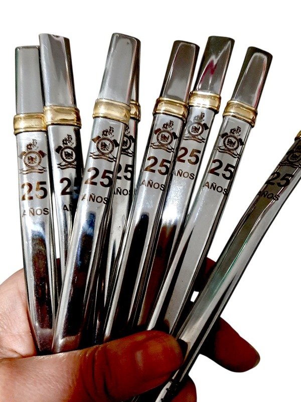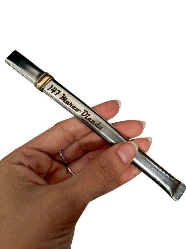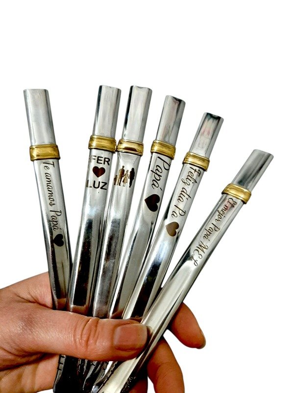 Clásica, elegante y totalmente personalizable ✨ Esta bombilla chata con detalle en bronce es el complemento ideal para tu mate. Fabricada en material resistente, garantiza un buen cebado y una larga duración.