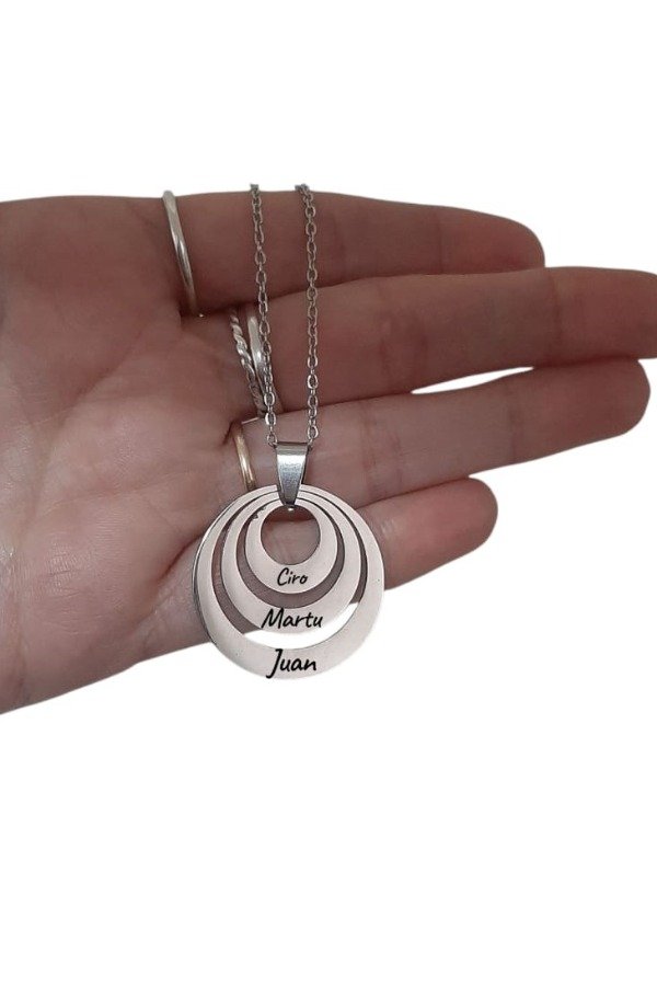 3 Corazones: Tres corazones unidos, cada uno grabado con el nombre de tus hijos. Un símbolo de amor eterno.