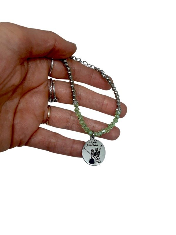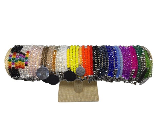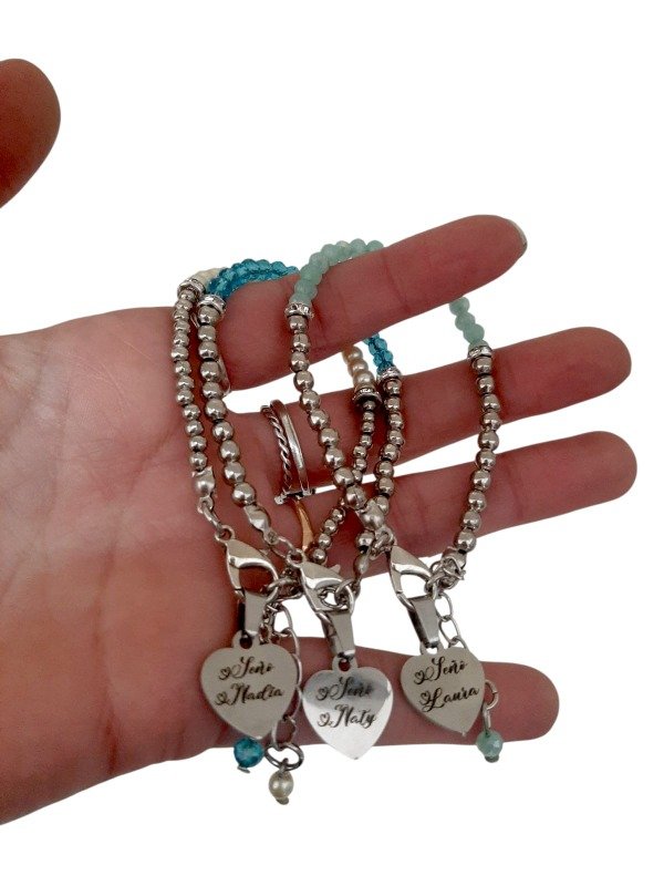 Pulseras de Vidrio Facetado con Medallita Grabada